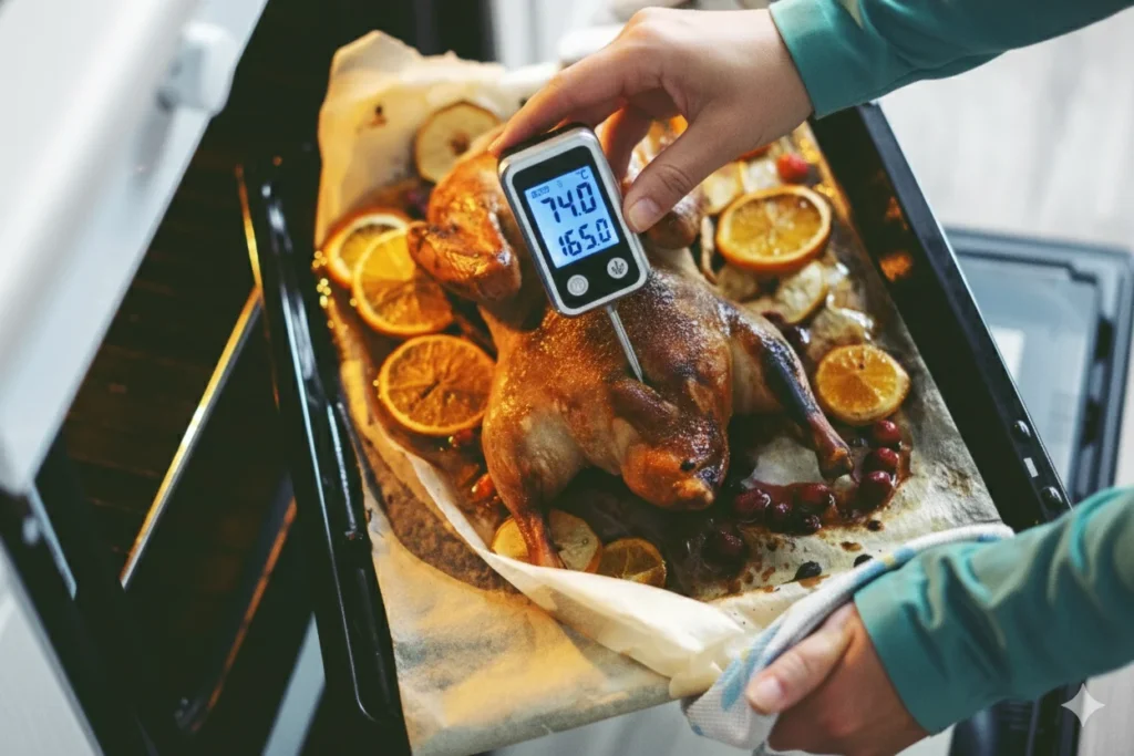 - ✔ Poultry (chicken, turkey) – 74°C